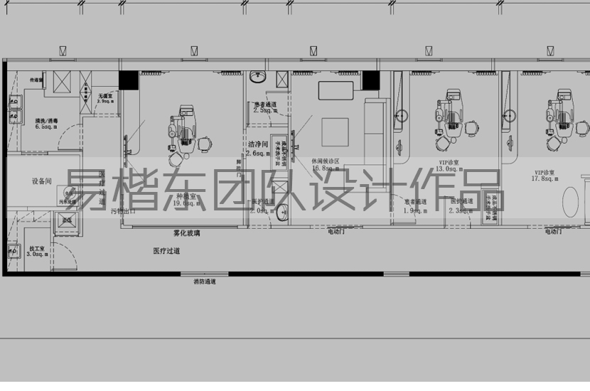 過道區(qū)域,縱深的延伸距離,拉長了空間的長度,簡約而不單調(diào),簡單的底色布設(shè)顯得干凈而大方。幾幅壁畫的點綴,讓整體區(qū)域有了色彩的跳動與活力。玻璃墻將每一個就診區(qū)域獨立的間隔開,既考慮了私密性,又保全了空間的專屬性。